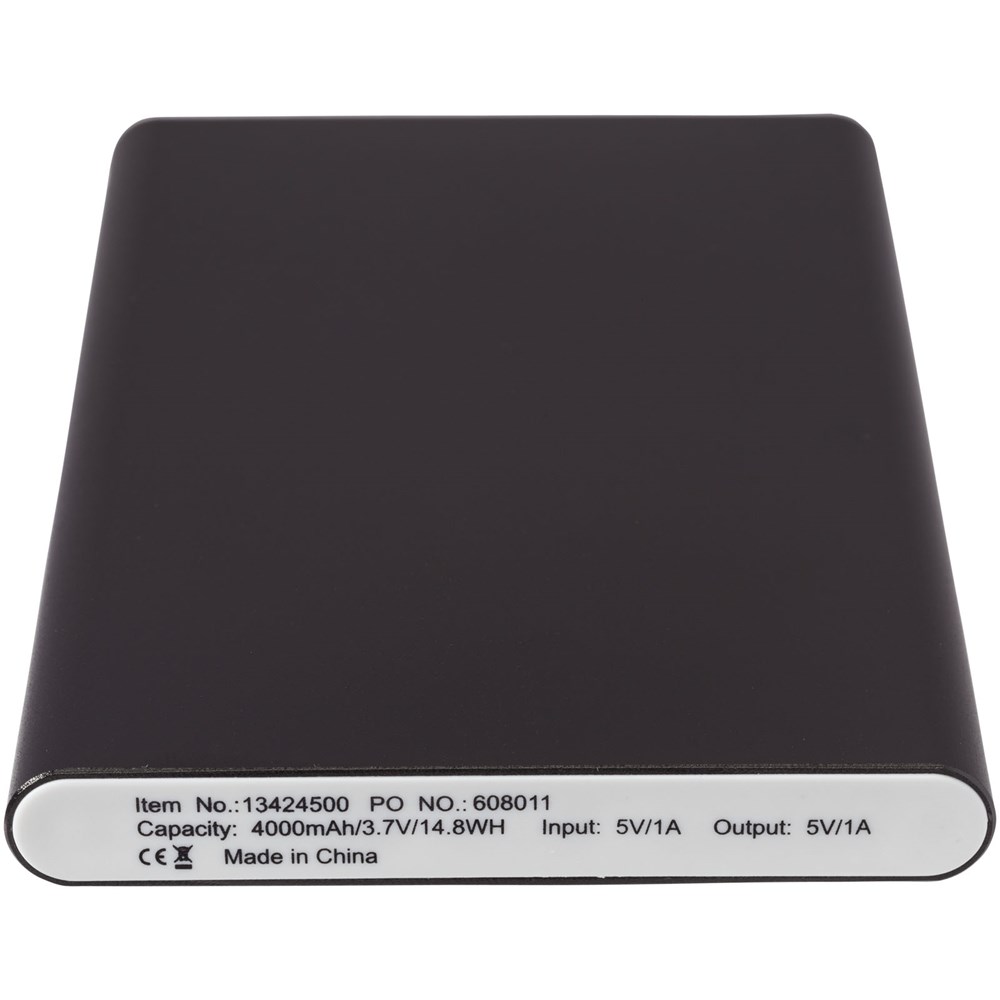Diese schlanke und leichte Aluminium-Powerbank enthält einen Lithium-Polymer-Akku der Klasse A und hat eine Kapazität von 4000 mAh. Die LED Anzeigen leuchten während des Aufladens auf und zeigen die restliche Akkukapazität in der Powerbank an. Die Powerbank hat einen 5 V/1 A Eingang und einen 5 V/1 A Ausgang. Im Lieferumfang enthalten ist ein Ladekabel vom Typ-C auf USB-A. Metalleffektlack. Verpackt in einer weißen Geschenkbox.